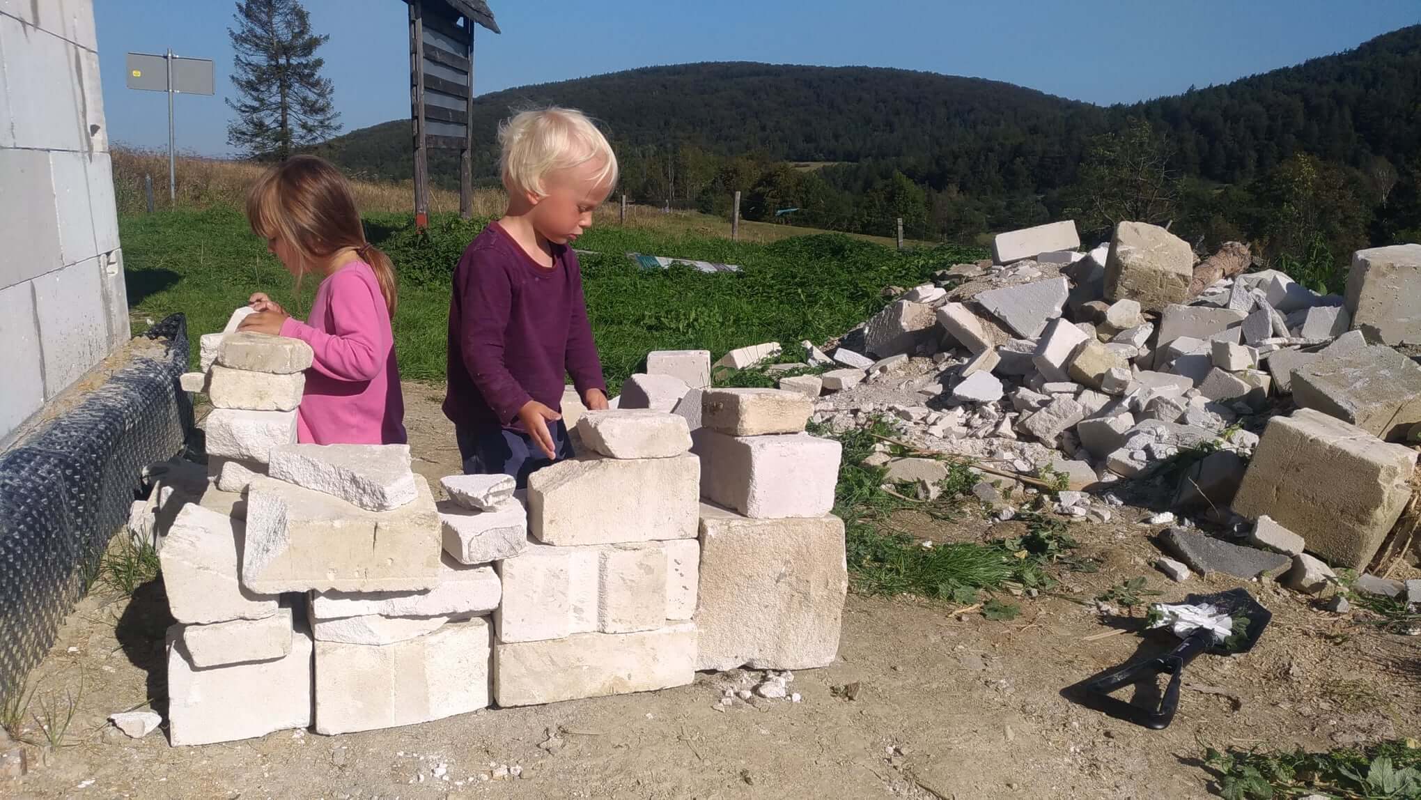 Na koniec zmiana tematu – nigdy nie byliśmy zwolennikami kupowania dzieciom wielu zabawek. Także tych określanych mianem ‚kreatywnych’. Zazwyczaj lądowały szybko gdzieś w kącie lub robiły duży bałagan w pokoju. Jeżeli jednak zadbamy o ich wyobraźnię, pokażemy jakie cuda może zdziałać kreatywność, wtedy patyk zamienia się w piracką szablę, kawałek drewienka w aparat fotograficzny, z resztek pustaków można zbudować dom, zarzucić linę na gałąź i zrobić najlepszą huśtawkę w życiu ![]()