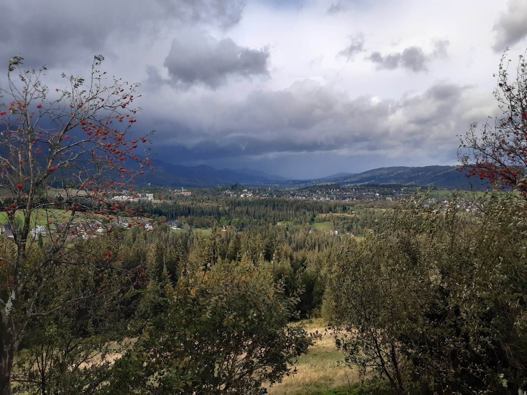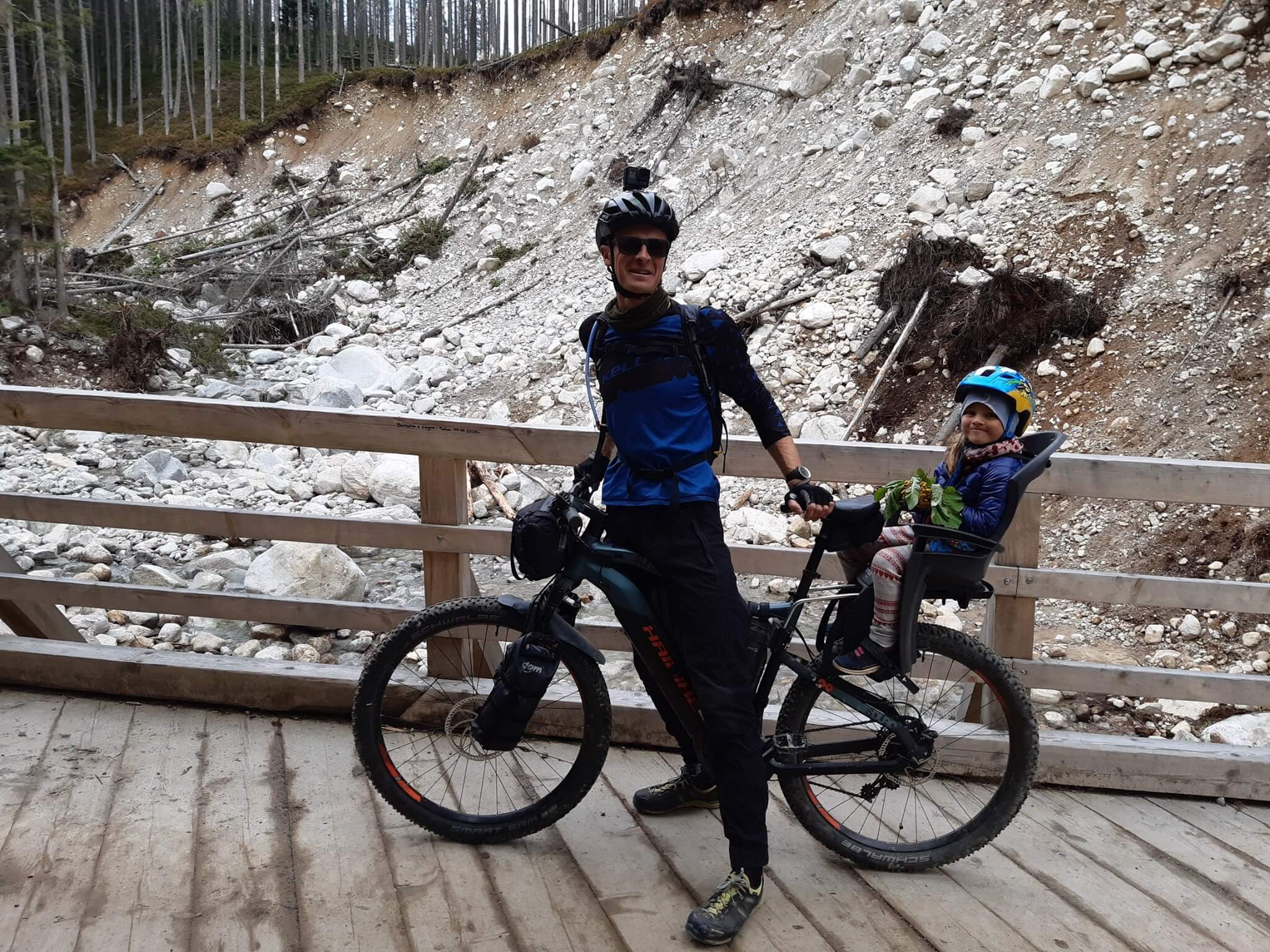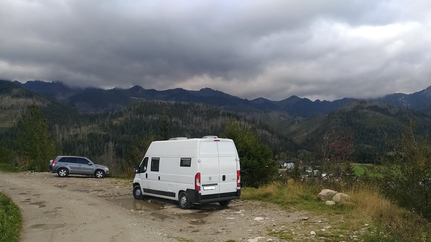 Szlak rowerowy to będzie jak go zrobią (pierwszy kilometr wyglądał super), albo jak jedzie się samemu. Dzieciaki wytrząsało jak cholera, po cichu potrzebowałem rzucać mięsem (Malika w foteliku uważnie słucha, co tata mówi), żeby trochę ciśnienia zeszło, a Natalia nakopałaby temu, kto oznaczył szlak jako rowerowy. W Beskidzie nie było problemu po błocie, korzeniach, po szlaku granicznym itp. Jednak ‘pięknie’ ułożone kamule, bo drogą brukowaną bym tego nie nazwał, wygrały. Zjechaliśmy do vana, spakowaliśmy rowery i ruszyliśmy na piechotę. Fajny wypad z dzieciakami, jednak tego dnia hulał już halny napędzany przez szalejący nad Europą sztorm Alex. W drodze powrotnej świerki łamały się jak zapałki. Co chwilę odwracaliśmy głowy w stronę ‘hrrrrrr’ i widzieliśmy, jak padały kolejne drzewa. Wieczorem znaleźliśmy fajne miejsce na nocleg na końcu Cyrhli. Piękny widok z dzikiego parkingu, na około kilka domków w fazie budowy, więc miejsce odludne. Wiało mocno, jednak była to najcieplejsza noc tego wyjazdu. Gdy dzieciaki zasnęły siedzieliśmy przy otwartych drzwiach z lampkami wina w rękach. Widok na Tatry, pędzące po niebie chmury, a pod nami Zakopane. Chyba najbardziej romantyczny wieczór tego wyjazdu. Może dlatego, że nie musieliśmy siedzieć w puchówkach z czapami na głowach. Przy otwartych drzwiach było ponad 15 st. ![]()