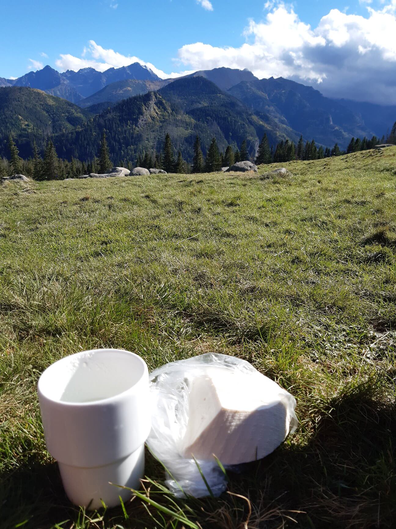 W końcu wynurzyliśmy się z lasu na skąpaną w słońcu Rusinową. Ojjjj po tych kilku deszczowych dniach w Tatrach to istny raj. Na Polanie byłem kiedyś, dobre kilkanaście lat wcześniej i pamiętałem smak żentycy. No i pasterski szałas cały czas stał w tym samym miejscu. Ehhhh w słońcu smak bunca i żentycy to niebo w gębie! Szkoda tylko, że w foliowych woreczkach, a nie na papierowym talerzyku…