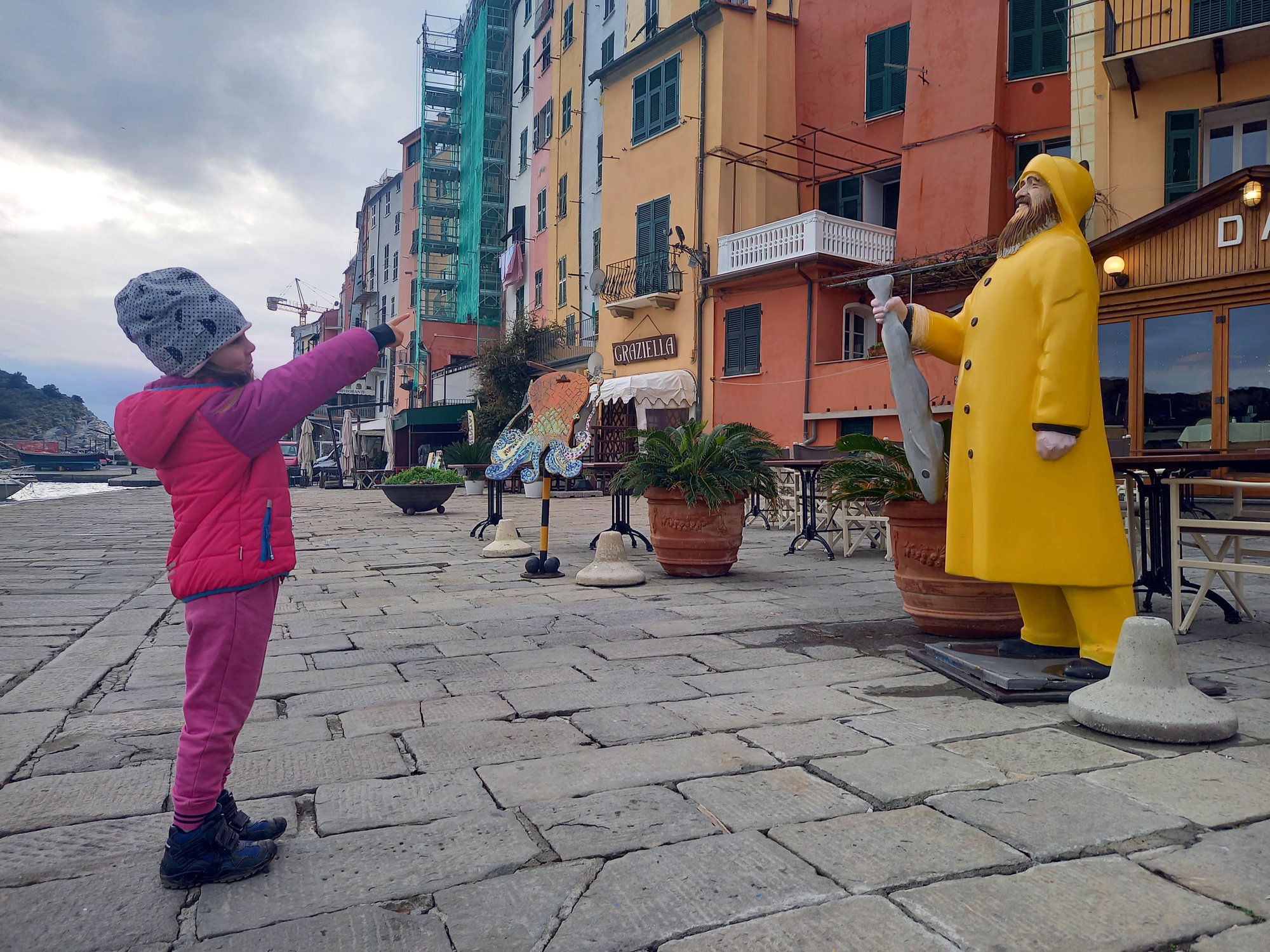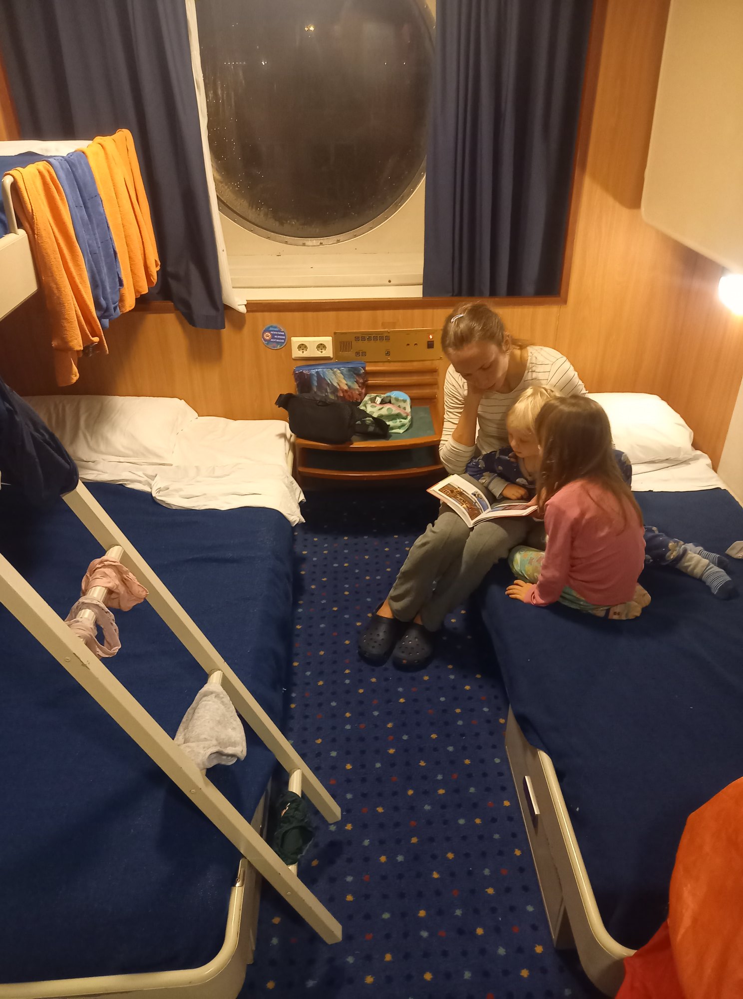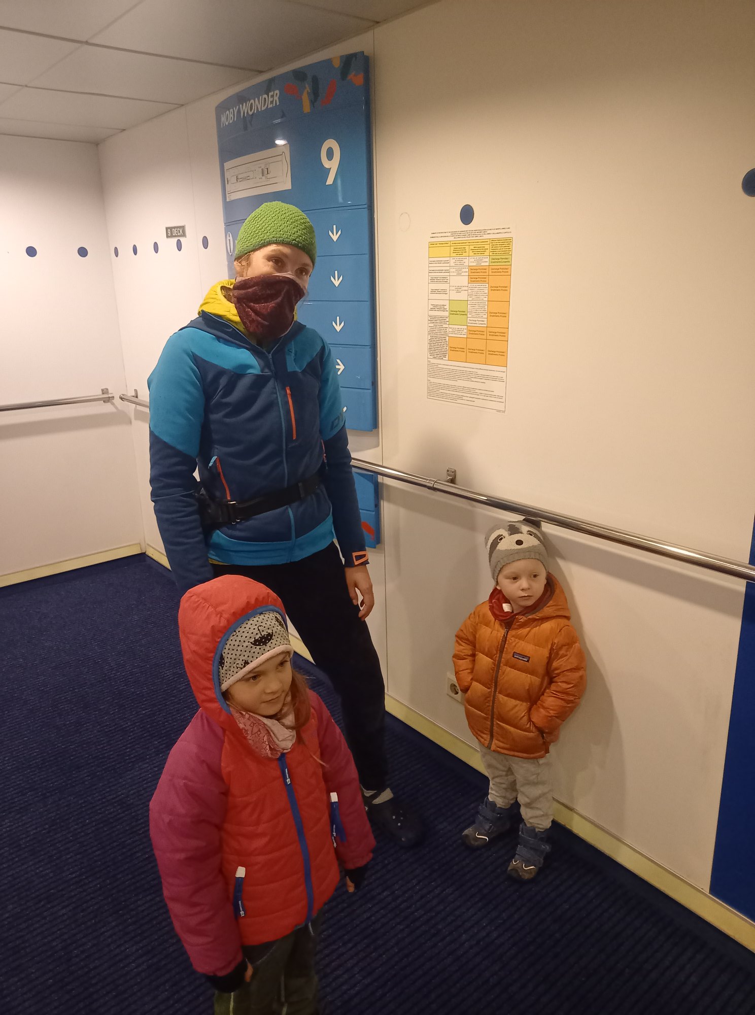Tego dnia czekała na nas jeszcze jedna niespodzianka, najważniejszy i najbardziej wyczekiwany punkt programu – przeprawa promowa. Po 2h w aucie zameldowaliśmy się w porcie Livorno. Pomiar temperatury, sprawdzenie biletu. Szybkie nakarmienie dzieciaków i wjeżdżamy. Co za radość dla dzieciaków! Dla mnie stres