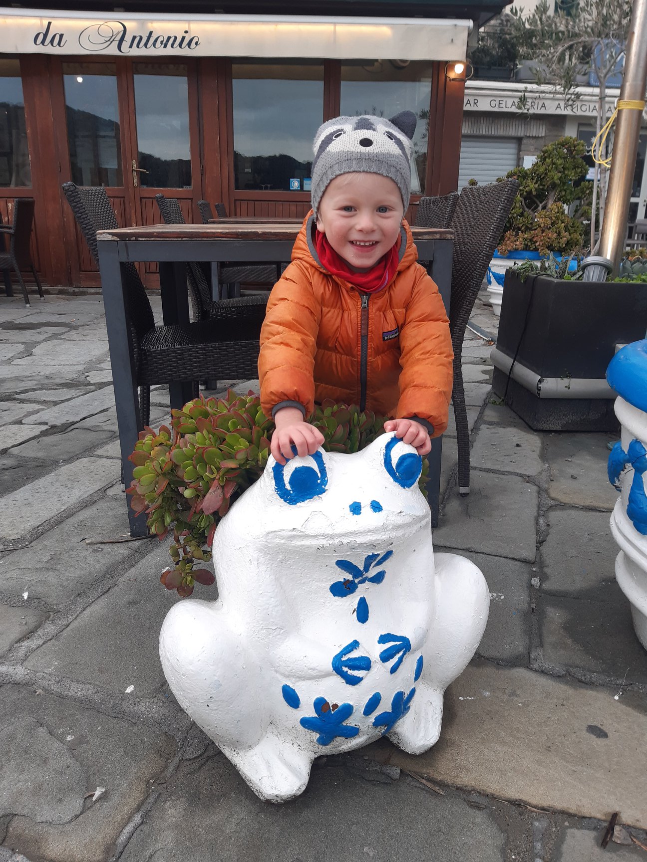 W nocy z niedzieli na poniedziałek 2 tyg. temu wypełniałem jeszcze papiery COVID’owe, żeby bez problemu można było przejechać przez Niemcy, Austrię i w końcu wjechać do Italii. No i co? Ani razu nikt nas nie zatrzymał, nie kontrolował. Granice przejeżdżaliśmy prawie o tym nie wiedząc. Dzieciaki bardzo dzielnie wytrzymały 3 dni jazdy. W nagrodę, pierwszy raz w życiu, zatrzymaliśmy się na McD i zamówiliśmy duże frytki. Uszy im się trzęsły, kiedy pałaszowali frytka za frytką. Druga nagroda – lepienie bałwana na włoskiej granicy, choć jechaliśmy szukać słońca ![]()