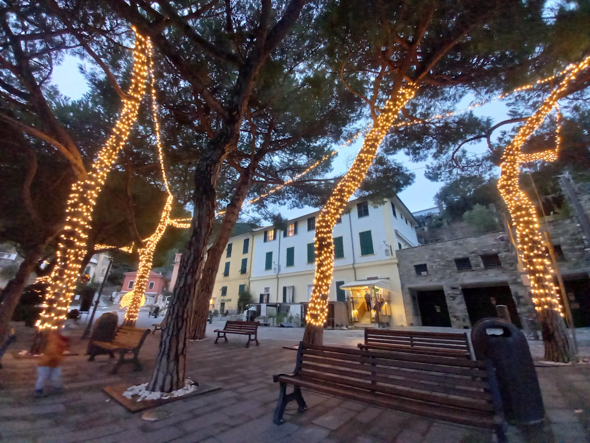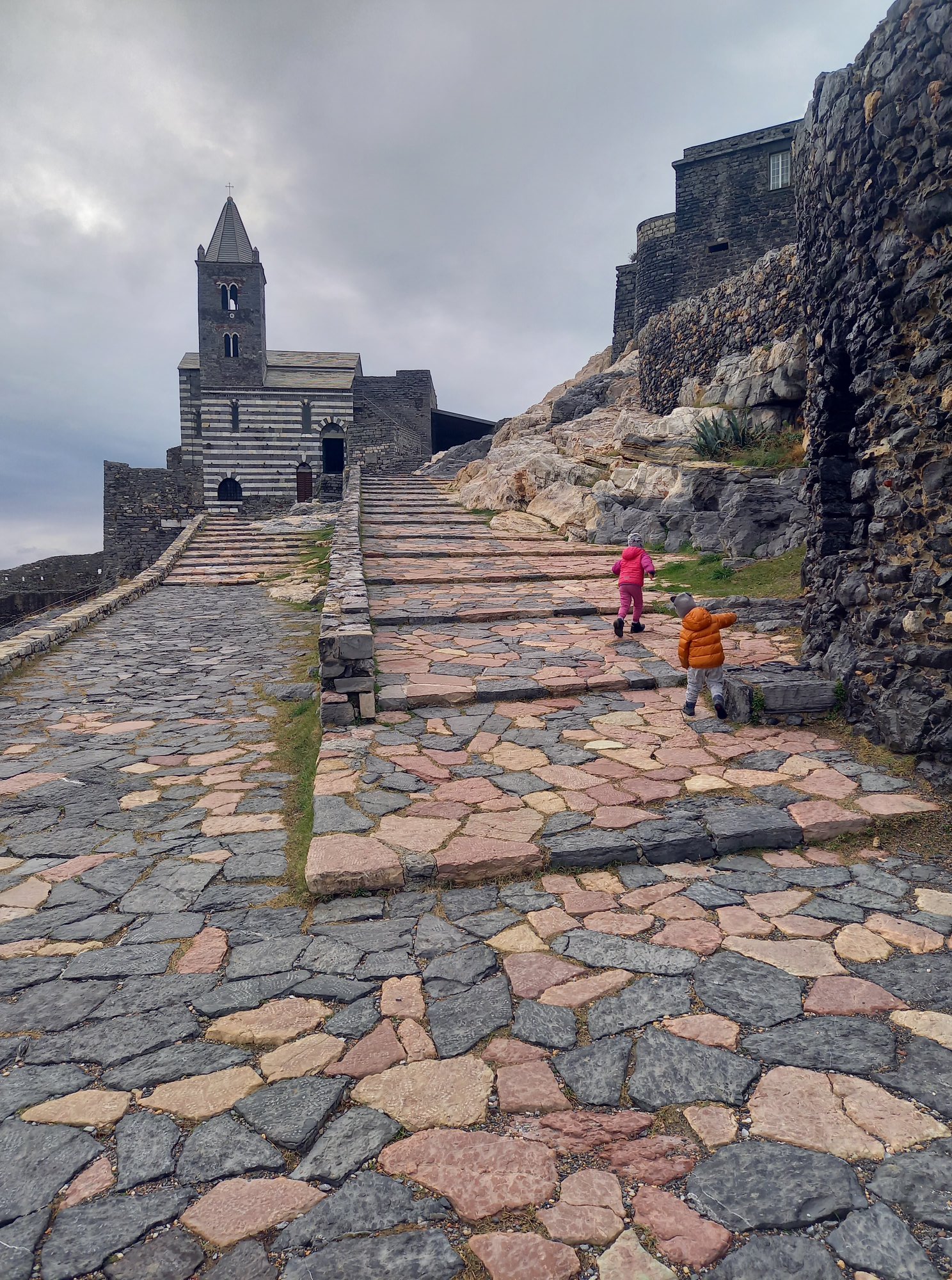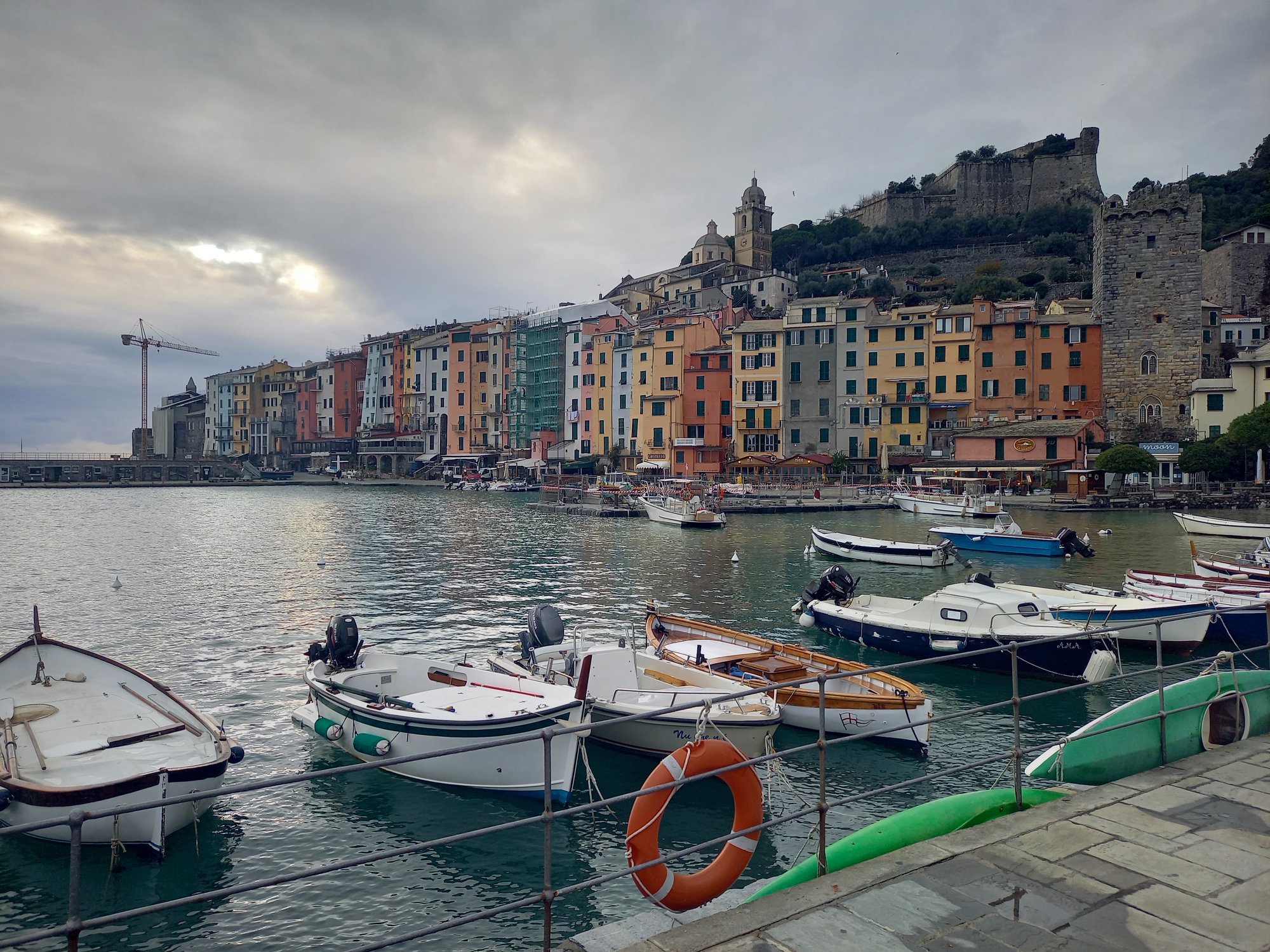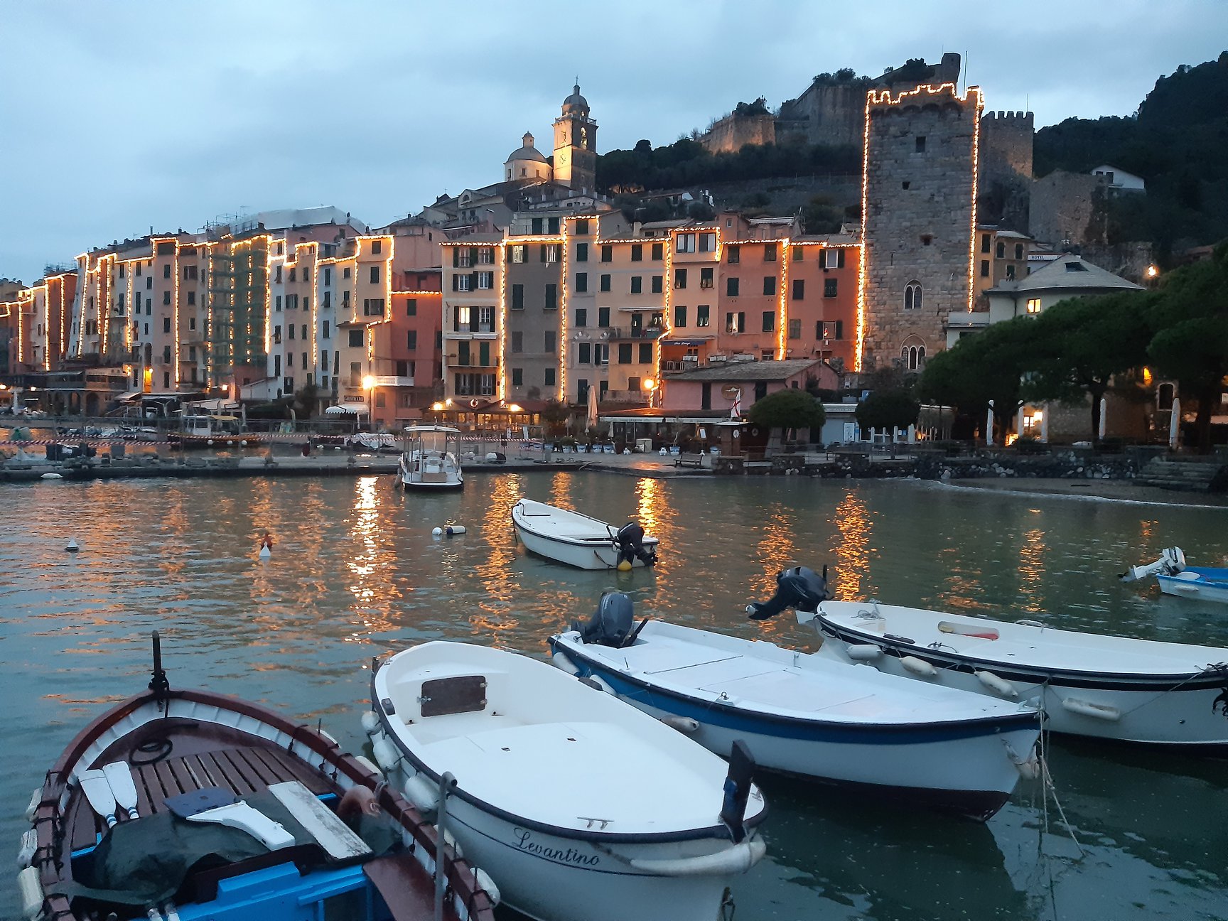 Granicę włoską przekroczyliśmy wcześniej niż zakładaliśmy więc, z kilkoma godzinami w kieszeni, udaliśmy się do La Spezia, a dokładniej do Porto Venere. Kolorowa i przecudna nadmorska mieścina, zwieńczona skałą, na której stoją ruiny zamku i mały kamienny kościółek Św. Piotra. W końcu poczuliśmy, że żyjemy, jesienna chandra ustąpiła miejsca włoskiemu słońcu, kolorom, wszędobylskiemu uśmiechowi i cappuccino. Przystrojona już na Święta Bożego Narodzenia mieścina była zapowiedzią wspaniałych przygód.
