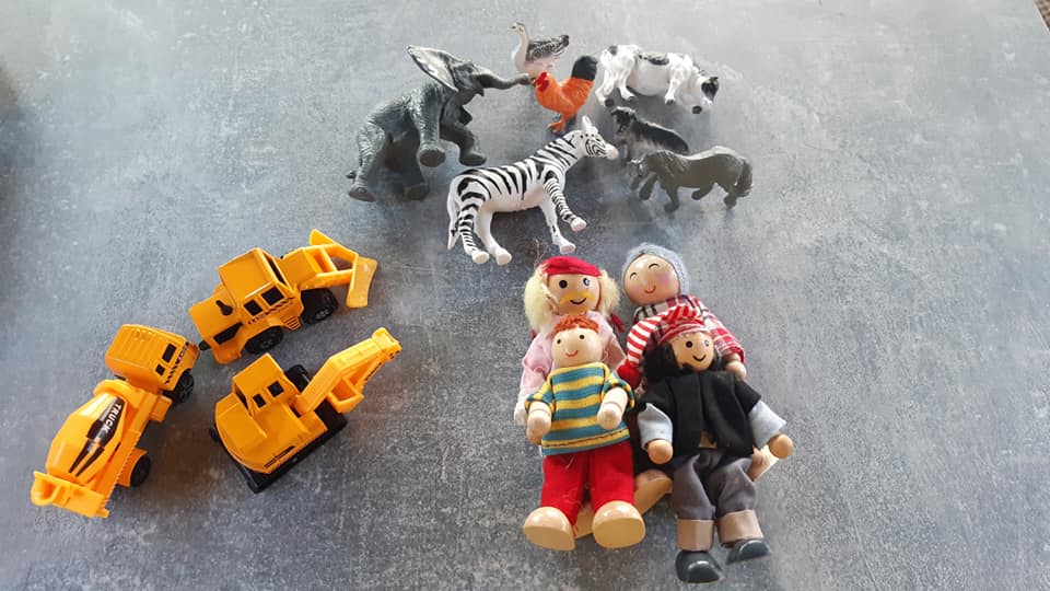 - Małe figurki zwierzątek i drewniane postaci. Dają duże pole do kreatywności. Sprawdzają się w piasku przy budowie farmy, zabawy w dom. 3+ i 5+
