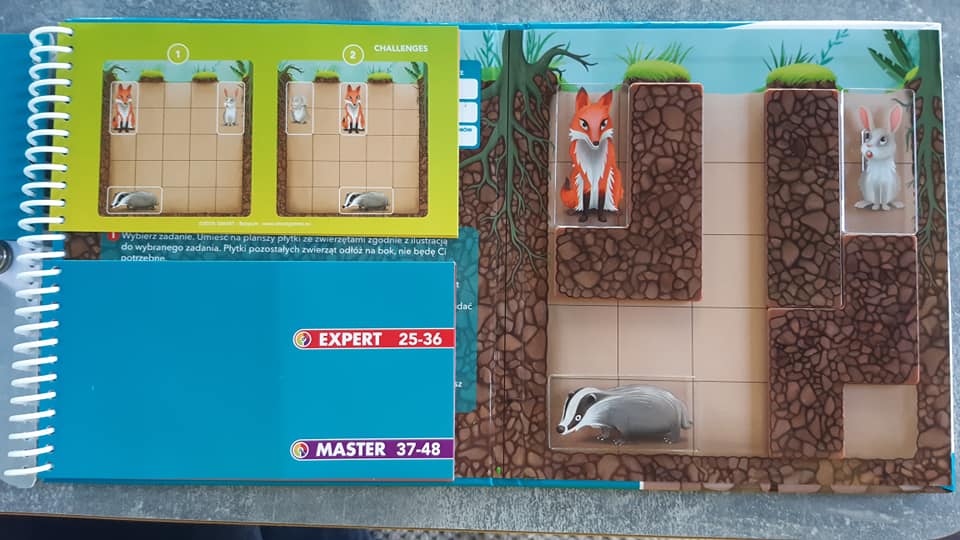 - Książeczki z serii smart games- małe, atrakcyjne wizualnie, uczą logicznego myślenia. Malika bardzo lubi w to grać, trzeba zbudować oddzielne norki dla zwierzątek, tak, by każde z nich miało wyjście i osobne mieszkanko. 3+ i 5+