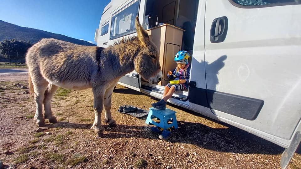 Wokoło góry, drzewa, krzaki, trawa i…codzienna pobudka fundowana przez kozy, krowy, dzikie świnie i osły. Wszystkie pętające się na wolności, niczym nieskrępowane, rano opuszczają zagrodę, by wieczorem same do niej wrócić. I tylko osły były wyjątkiem. Lubiły zatrzymać się koło naszego vana i czekać, aż dzieciaki wyjdą z rana, żeby je wygłaskać i poprzytulać