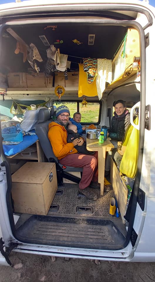 Wieczorem spotkanie w vanie. Dzieciaki bawią się na łóżku klockami, rysują i wycinają. My siedzimy i zanurzamy się w dyskusję. Spotykasz pierwszy raz ludzi i możesz z nimi gadać, gadać i gadać. Jakbyśmy ich znali od zawsze. To ten wspólny mianownik ludzi outdooru – miłość do natury, do prostoty życia, do minimalizmu i do spędzania czasu razem. Wiele osób pyta nas z czego żyjemy, jak opłacamy taką podróż. O tym mówiliśmy ostatnio podczas wizyty w Moto Radio i jeszcze przyjdzie czas na osobny wpis. Jednak dziś podzielimy się tym, czego dowiedzieliśmy się od pary Szwajcarów. Podróżowali od zawsze – jako para, potem z synem. Czuli, że chcą wyjechać na dłużej, przewietrzyć głowy, znaleźć inspiracje, pomysł na dalszą część życia. Jednak kołowrotek – praca, życie rodzinne, itd. – nie szedł po drodze z tym, co mieli w głowie. Kolejna ciąża i…wtedy decyzje jakoś przyszły łatwiej – wyjeżdżamy po narodzinach syna. Andrea do pracy już nie wróciła, Andy rzucił ją, kiedy syn przyszedł na świat. Nie są związani z IT, gamingiem itd.