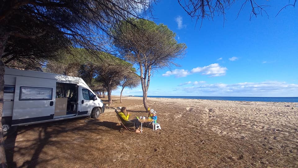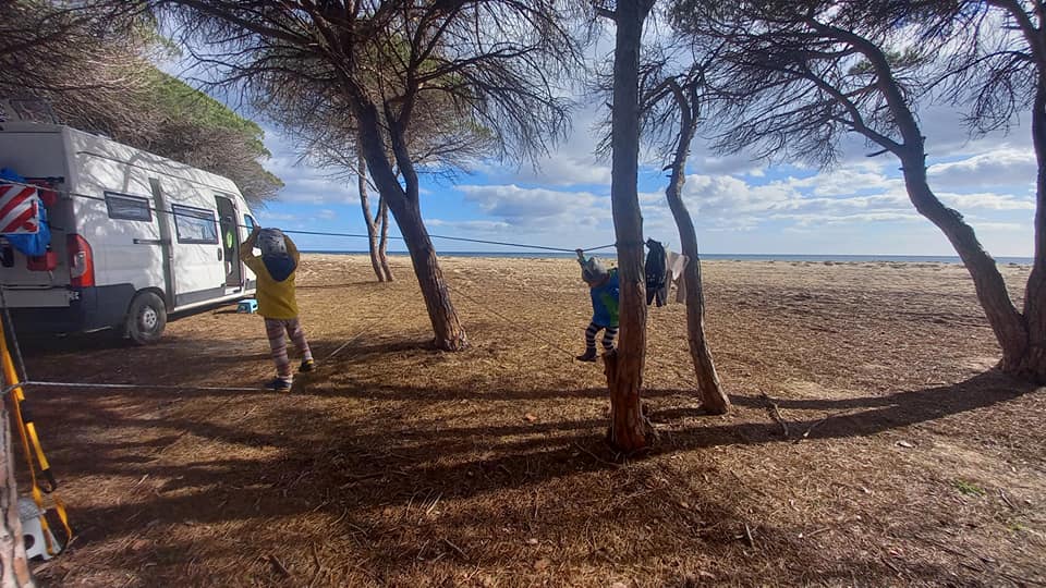 Po wigilijnych przygotowaniach u Beaty i Claudio Sardinia Slow Experience na plaży odwiedzają nas Melina i Simone. Stoimy wtedy vanem prawie na plaży, wśród drzew piniowych. Jest ciepły dzień, więc siedzimy na zewnątrz. Kilka dni później zapraszają nas do siebie. Po kolejnych tygodniach mamy znowu możliwość wziąć prysznic i wyprać rzeczy. Przyjeżdżamy z rana, żeby móc spędzić cały dzień razem. Obiad, rozmowy, zabawy z dziećmi. Potem spacer, kolacja i więcej rozmów. Wracamy po nocy do kampera, kiedy dzieciaki prawie zasypiają nam na rękach. Ten dzień zaczął się trochę stresowo. Chcąc podjechać na parking, który zaproponowała Melina (stare miasto w Orosei) zapomina, że jeżdżę vanem. Robi mi się ciepło i tętno skacze do maksimum. W pewnym momencie proszę Natalię, żeby wysiadła z auta i pomogła mi przejechać. Składamy lusterka, dość ostry zakręt w lewo i od razu w prawo. Po jednej i drugiej stronie mam może 3 cm zapasu. Udało się, więc bez namysłu wyjeżdżamy ze starego miasta i parkujemy trochę dalej