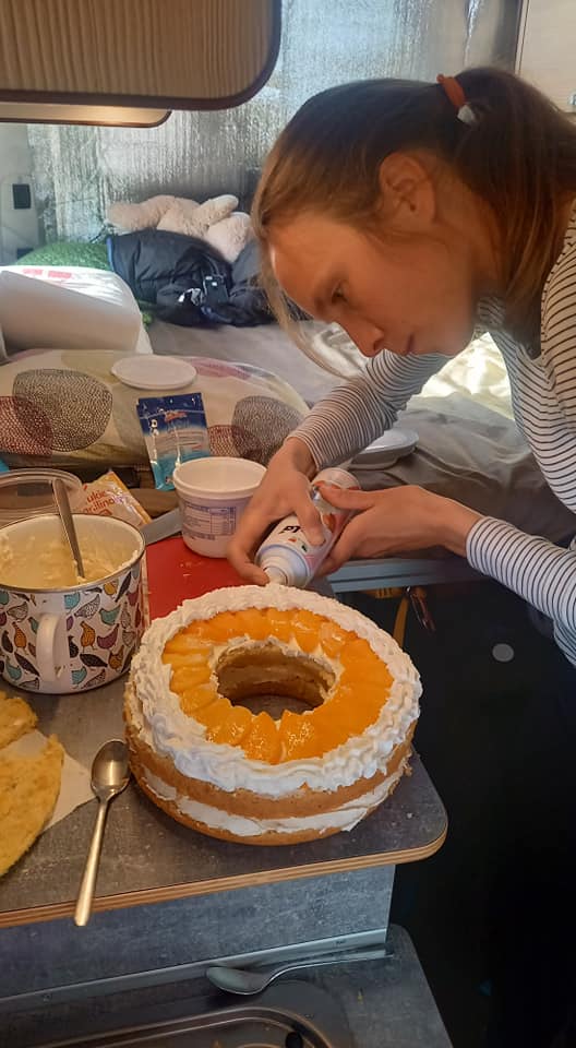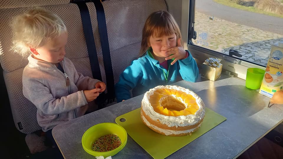 Natalia przeszła samą siebie i w nocy piekła ciasto, które po śniadaniu dzieciaki przystrajały kolorowymi groszkami. Nie obeszlo się przy tym bez afery ![]()
