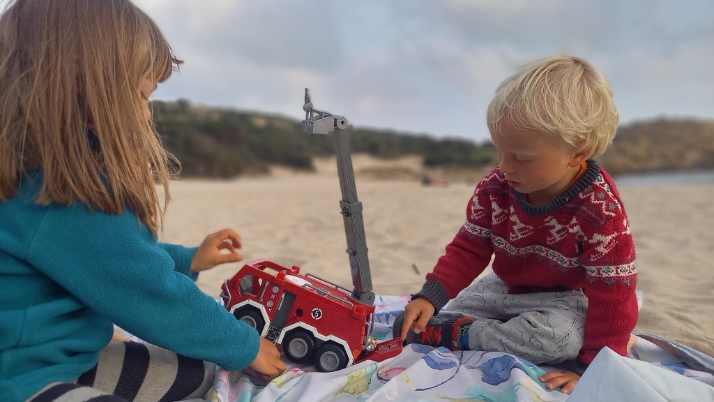 Tego dnia Mandela dostał w prezencie wymarzoną straż pożarną. Jedna z niewielu plastikowych zabawek. Natalia kupiła ją w Cagliari na pchlim targu 😉 3xR – Reduce, Reuse, Recycle. W straży brakuje jednych drzwi, co nie stanowi dla Mandeli problemu – to jego ukochana straż. Przed nim bawił się nią jakiś inny chłopak, dumny Sardyńczyk. Trafi pewnie za jakiś czas do innego młodego człowieka zakochanego w straży pożarnej. Zupełnie nie ma sensu mnożyć kolejnych plastikowych zabawek, które już za chwilę trafiają w odstawkę, do kosza, a potem na wysypiska śmieci.