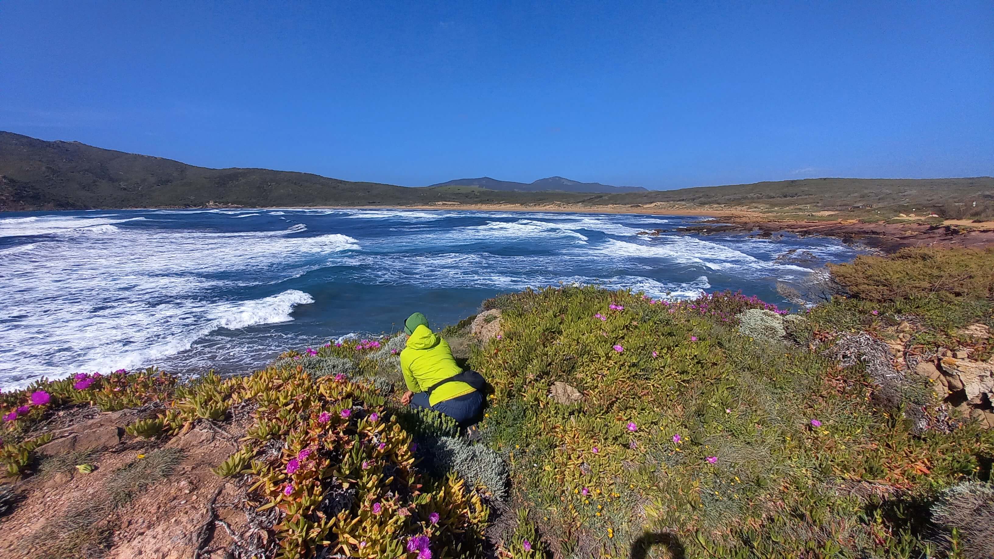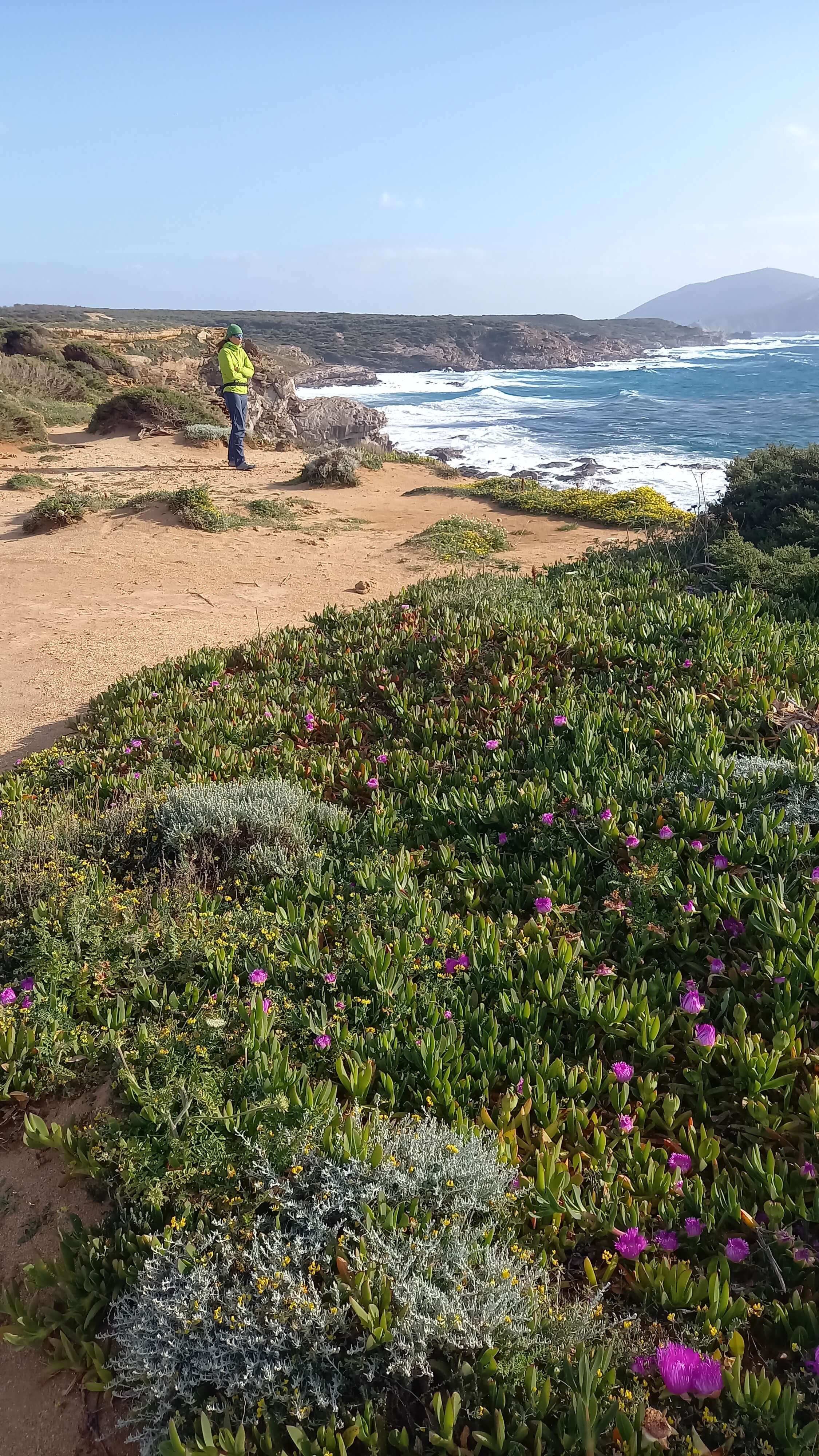 Najśmieszniejsza przygoda zdarzyła się koło Porto Ferro. Był 12 kwietnia i Sardynia znalazła się w czerwonej strefie. Podczas ostatniego weekendu zewsząd byliśmy bombardowani niemiłymi informacjami, że tym razem Carabinieri uprzejmi nie będą – łapią wszystkich, wlepiają mandaty, nawet drony będą wykorzystywane do tropienia przestępców łamiących przepisy. Podróżująca po Sardynii niemiecka rodzina, którą poznaliśmy kilka tygodni wcześniej, dała za wygraną i dzień wcześniej opuściła wyspę. Nie wiedzieliśmy do końca czego się spodziewać 🤔 Minimalizując szanse natknięcia się na stróżów prawa znaleźliśmy odludne miejsce z dala od miast. Można było poruszać się w pobliżu domu, więc spacer w okolicy vana wchodził w grę.