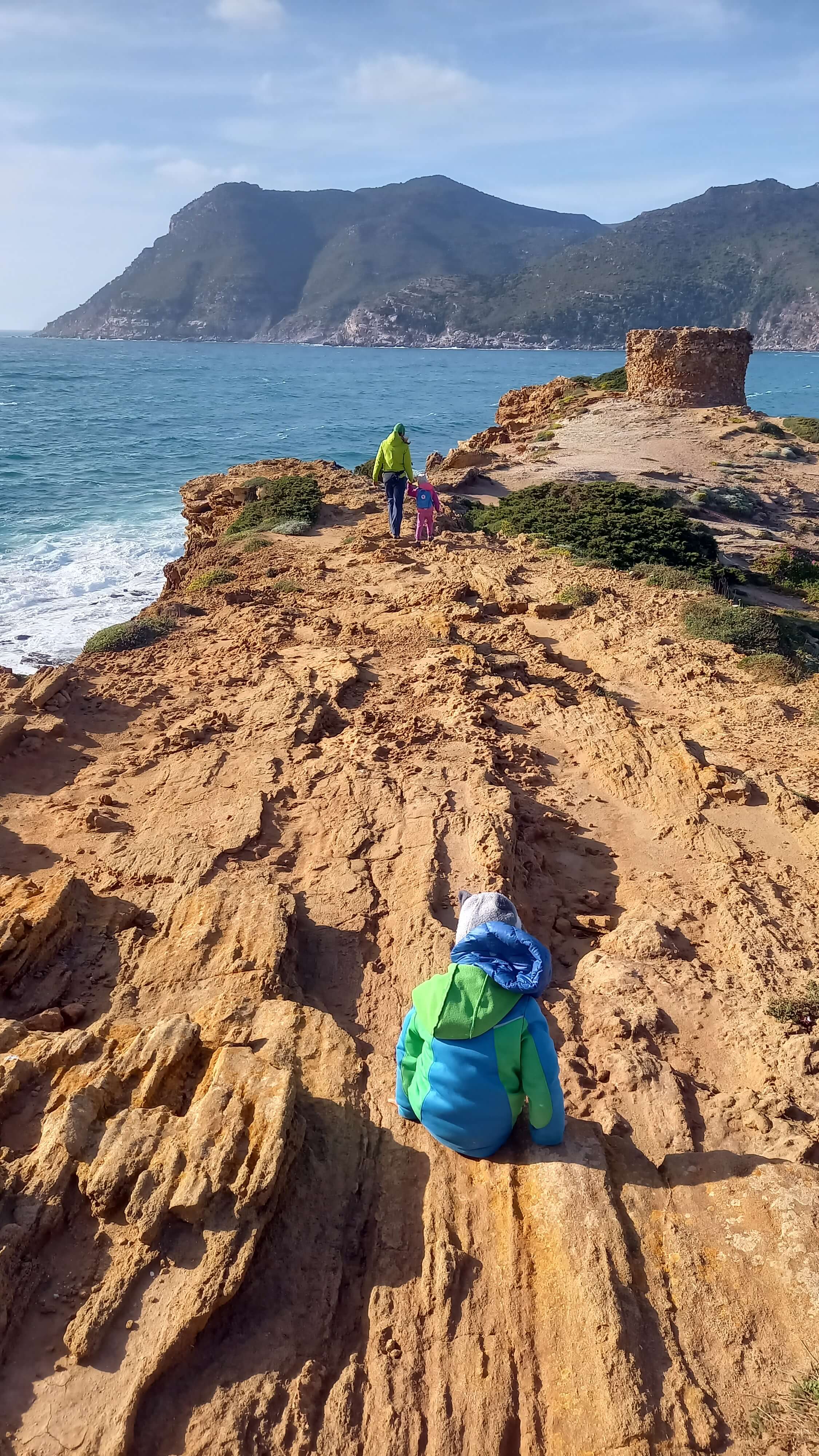 Choć poniedziałek był dość pochmurny i mokry po śniadaniu wyruszyliśmy zwiedzić okolicę. Gdy znaleźliśmy się na ścieżce nad klifami pierwszy raz usłyszeliśmy helikopter latający w oddali. Nie zawracając sobie nim głowy szliśmy dalej. Pamiętam, że niosłem wtedy Mandelę na barana, na sobie przeciwdeszczowy pomarańcz (łatwy cel haha), szliśmy blisko siebie rozmawiając z Natalią. W pewnym momencie odgłos wirnika zrobił się głośniejszy i było widać, że helikopter… leci w naszym kierunku? Stanęliśmy jak wryci. Co jest?! Policja? Zrobiło się nam naprawdę ciepło, kiedy zdaliśmy sobie sprawę, że leci do nas i w dodatku obniża pułap. Trwało to może ze 2 minuty. W końcu maszyna wylądowało 100m od nas. Popatrzeliśmy na siebie z niedowierzaniem. Policja? Mandat? Wyskoczą uzbrojeni komandosi i powalą nas na ziemię? 😱 Sekundy leciały, a my gapiliśmy się w kierunku śmigłowca. Mijały sekund – 5…10…15. Nikt nie wyskoczył, nikt nie otworzył drzwi. Zwiększenie obrotów i helikopter uniósł się powoli w powietrze, skręcił w lewo i minął nas w odległości 50m. ‘Strażacki!’ – wykrzyknąłem z zadowoleniem. ‘Strażowy, strażowy’ – wołał podekscytowany Mandela. Popatrzyłem na Natalię i razem wybuchnęliśmy śmiechem 🤪😂