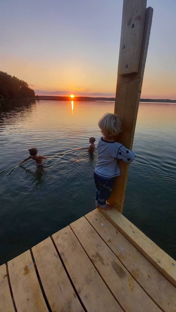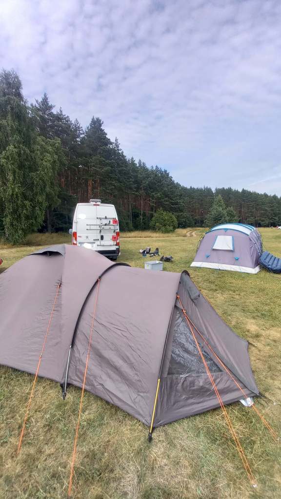 Miejsce, jakich mało na świecie. Bo jak nazwać ‘kemping’, na którym do dyspozycji są dwie pompy głębinowe, kilka TOITOI, więc codziennie spełniam swój ‘święty’ obowiązek latając z kasetą :), piękny widok na jezioro, las dookoła oraz…strefę ciszy 😃 Tak, to ewenement w skali kraju. Kemping, pole namiotowe, na którym obowiązuje strefa ciszy 🥳👍 Kiedy rano otwieramy oczy jedyne, co słychać to śpiewające ptaki. Dobra, Mandelę i Malikę także 😂, jednak zanim się obudzą można jeszcze przez kilka, kilkanaście minut chłonąć naturę. Czas tylko dla rodziców 🙃