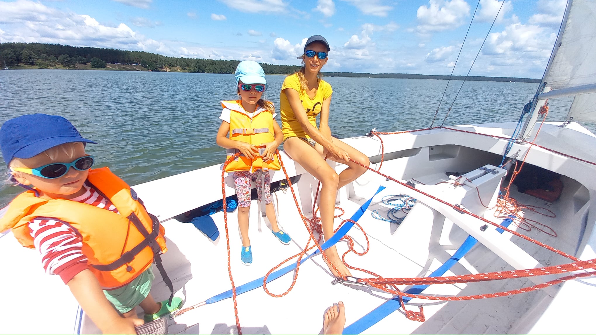 Udało nam się znaleźć swoje miejsce i w takich okolicznościach przyrody spędziliśmy 1.5 miesiąca. Malika i Mandela pierwszy raz stanęli na pokładzie żaglówki. A że pogoda tego dnia była wietrzna z licznymi szkwałami, nasza mała Omega cały czas chodziła w przechyle. Malika dziarsko trzymająca wanty, jak Vaiana, odważnie płynęła w nieznane, co chwile wykrzykując do przepływających jachtów, że jest piratem
