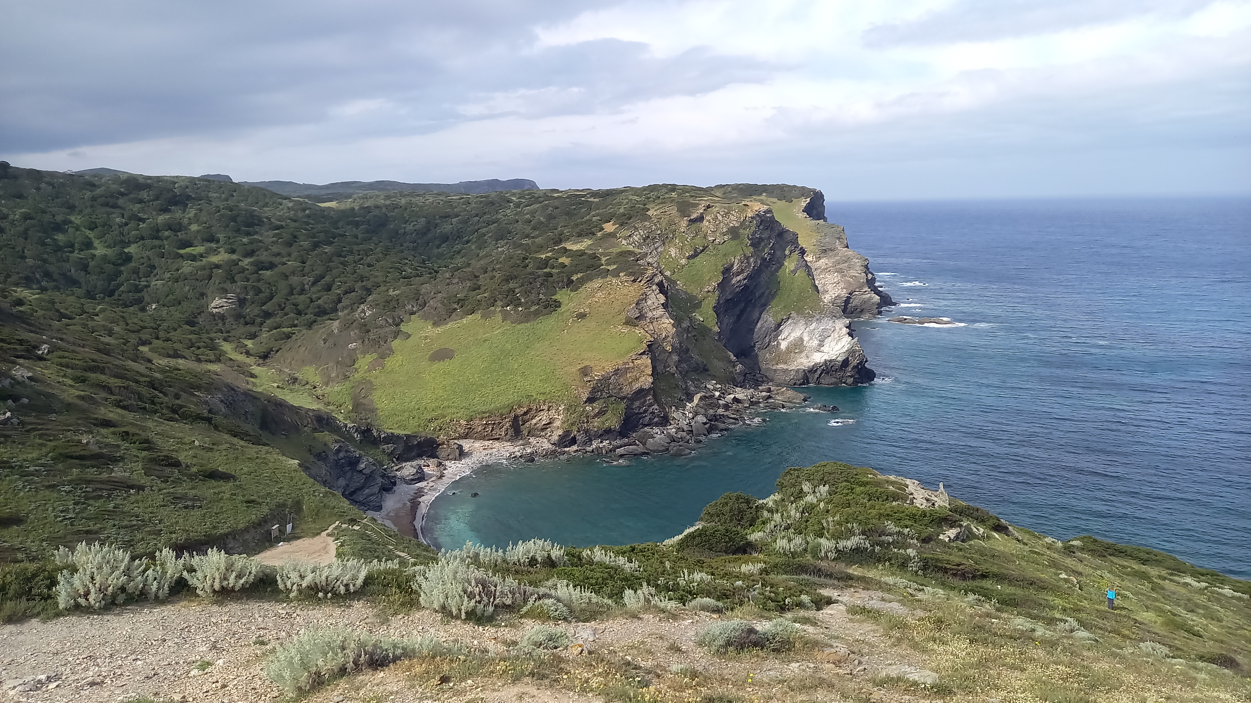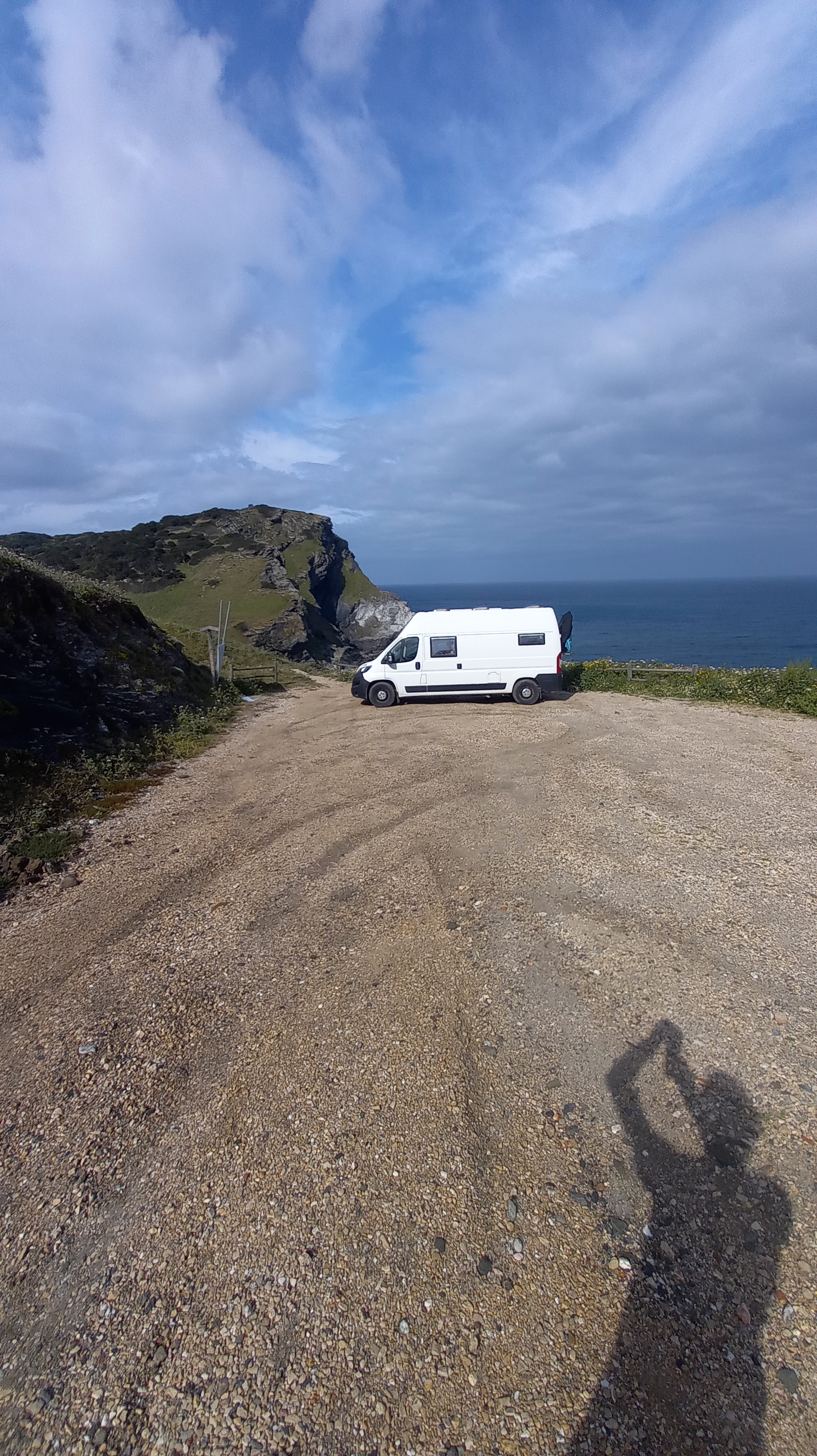 Miły wieczór, a raczej pół nocy przy winie i rozmowach 🙂 Mi jednak trochę słabo się spało, a to za sprawą miejsca, gdzie zaparkowaliśmy. Może nie samo miejsce postoju, co dojazdu i, pozostającego cały czas pod znakiem zapytania, wyjazdu 🙂 Pierwszy raz miałem cykora. Kiedy zjechałem vanem na parking na klifie, Natalia stukała się w głowę, chyba mówiła coś o głupocie i na pewno opisała męża kolorowymi epitetami, których tu nie będę przytaczał 🙂 Potrzebuję przyznać jej rację. Choć zjazd wyglądał na dość łatwy, po kilka zakrętach zrobiło się wesoło – wielkie koleiny, kamienie i dość wąsko. Jednego się nauczyłem – warto przejść na pieszo drogę dojazdową i wtedy podjąć decyzję 🙂