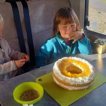 Dziś WIELKIE wydarzenie – 5te urodziny Maliki Natalia przeszła samą siebie i w nocy piekła ciasto, które po śniadaniu dzieciaki przystrajały kolorowymi groszkami. Nie obeszlo się przy tym bez afery Rano okazało się także, że stoimy 20m od 300m przepaści (jeden z tutejszych kanionów). Tak to jest, jak parkujemy po nocy. A po południu impreza … More Urodzinowo
